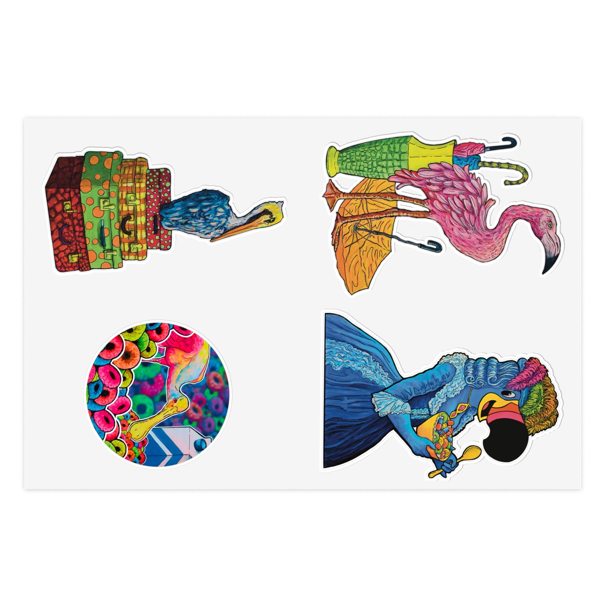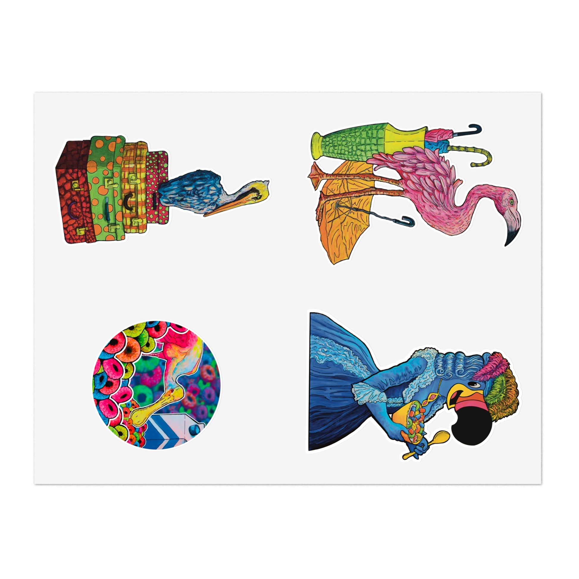 Colorful and Cute Spoonbill & Flamingo Stickers Sheet — Vinyl Sticker Set for Planners, Scrapbooks & Gifts