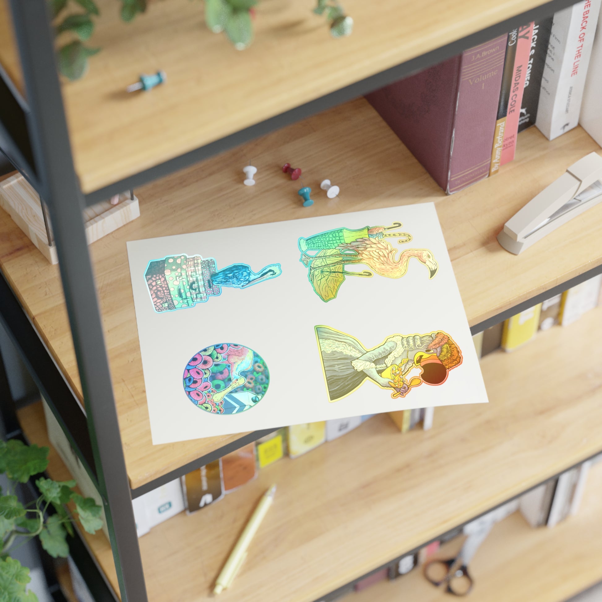 Bright, playful sticker sheets made to bring color and personality to notebooks, water bottles, planners, and laptop corners. Each sheet features a handful of vivid die-cut designs printed on premium vinyl with a protective matte laminate so the colors stay bold through daily wear. Choose white, holographic, or transparent vinyl to match your style—holographic for extra shimmer, transparent for a seamless look, or white for punchy, true-to-art colors. The easy-peel backing lets you place stickers quickly, and the durable, water-resistant material stands up to indoor use and short-term outdoor adventures. Hand-assembled in the USA, these sheets are printed with eco-solvent inks for a gentler footprint while keeping your stickers looking fresh.